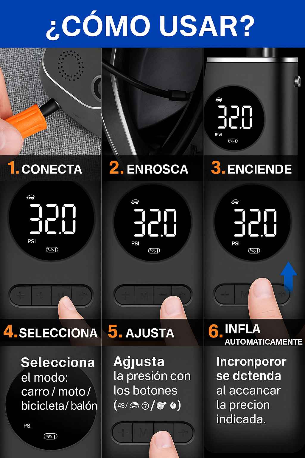 ✅ Múltiples Modos de Uso: Preconfigurado para automóviles, motos, bicicletas y balones.